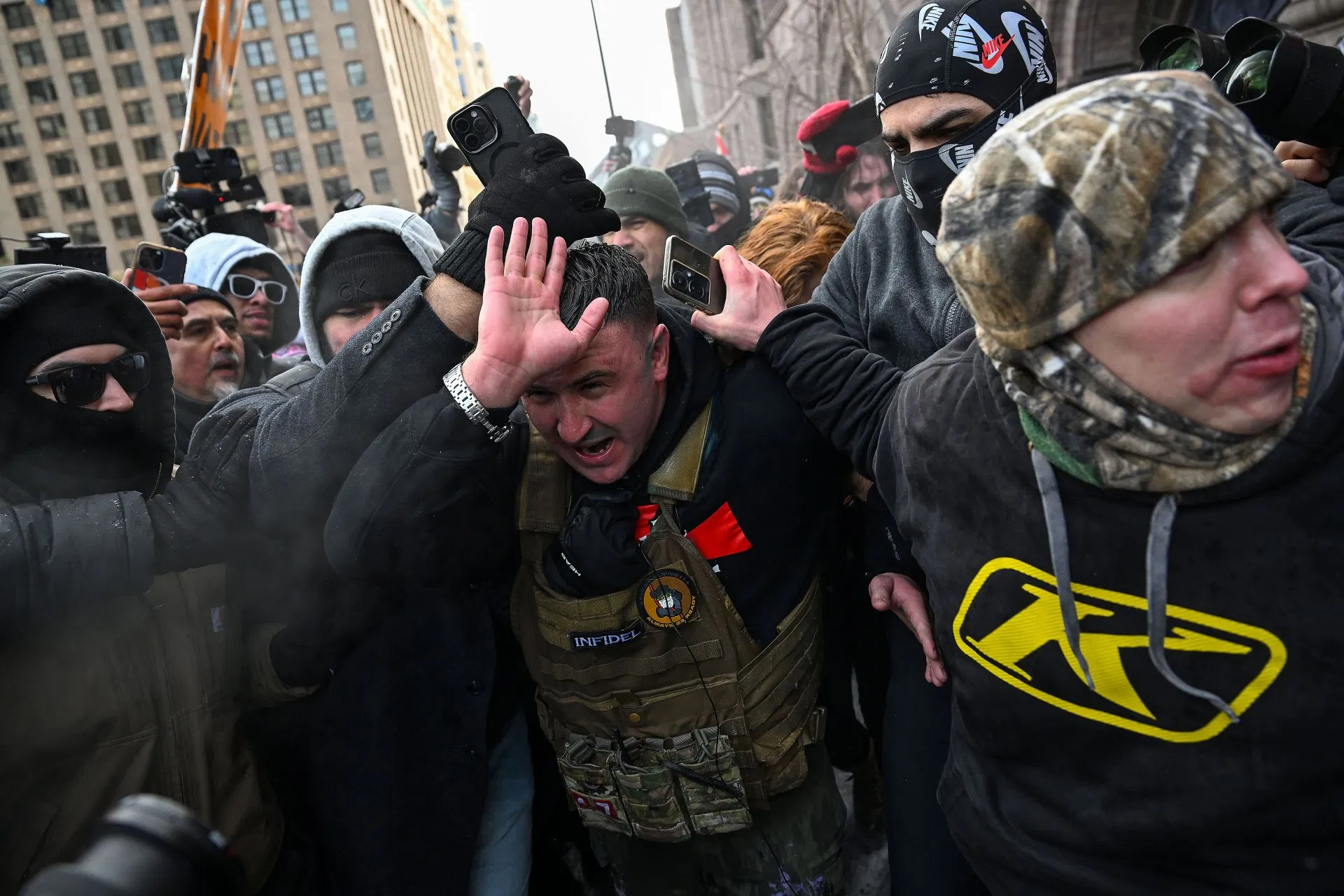 Counter‑protesters confronted him, forcing him to leave the rally. He later posted images suggesting he was injured, though police reported no assault complaints.